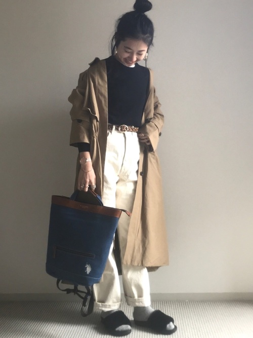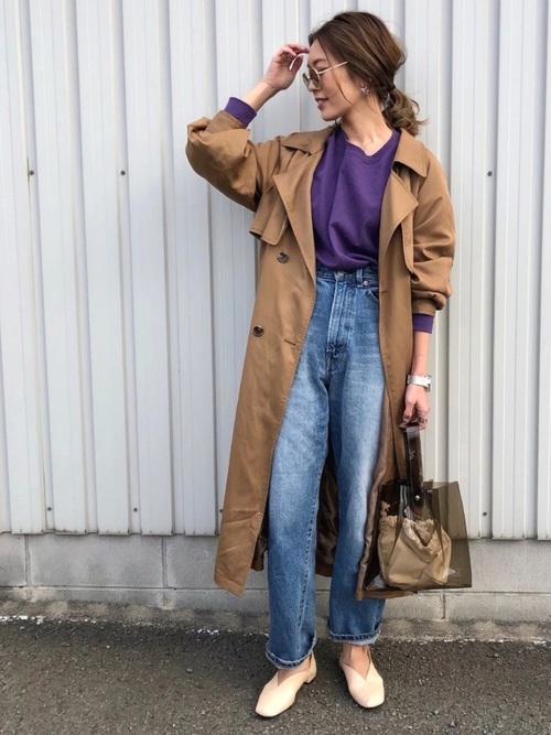 蠻少看到用卡其色風衣搭配深紫色上衣的,但這樣搭也太好看了!手上拿的透明包包超級好看,連妞編輯都想要購入了~