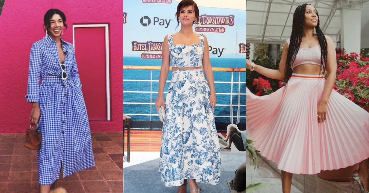 上下身同花色的套裝風潮在近幾年越演越烈,今年春夏的套裝建議大家以裙裝為主,上衣與下身裙裝中間的露肌感不僅在身形上有修飾拉長的效果,更有春夏的季節感,也會讓整體的風格帶點休閒度假風,從頭到腳的單一印花或色系很推薦大家試試看!