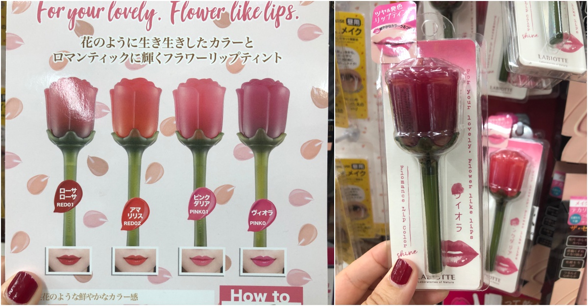 女孩們最愛逛的美妝類滿滿一大區,除了常見的日本品牌外更有一些特色商品,這朵玫瑰造型的唇彩超適合買來送人。