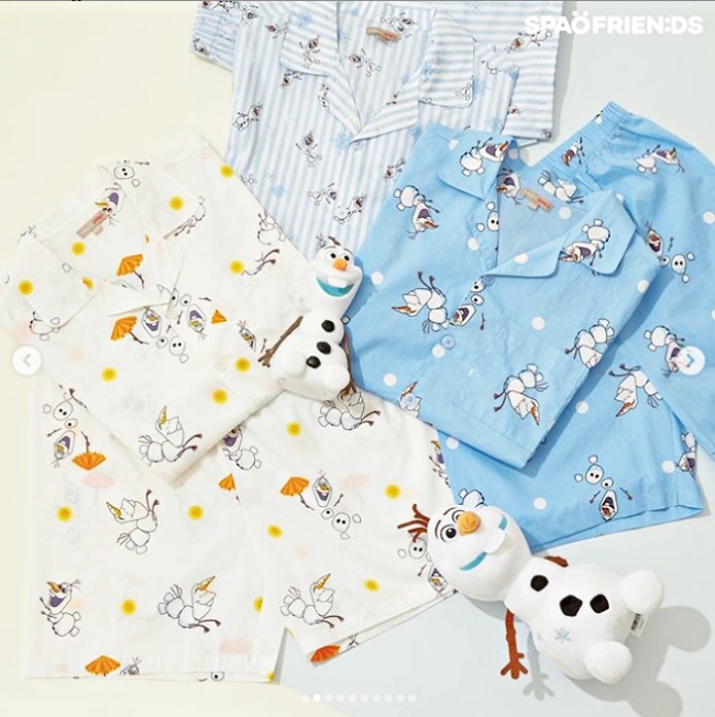 電影《冰雪奇緣》以及卡通《蠟筆小新》中的超圈粉角色「雪寶」以及「小白」來加一,分別跑上居家服單品上玩耍,分別搭配可愛的圖案設計,在家穿一定很療癒!
