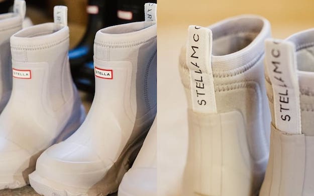 Stella McCartney與Hunter攜手合作,設計全新橡膠長靴,堪稱同類鞋履當中最符合可持續發展原則的款式。這款橡膠長靴在Stella McCartney於巴黎舉行的2019年冬季系列時裝展上首度亮相,設計薈萃設計師Stella McCartney的時尚觸覺和經典英式傳統,糅合可持續開採的天然橡膠與名為YulexTM的創新物料,開拓鞋履的新世代。Hunter自1856年起一直採用天然橡膠製造鞋履,而Stella McCartney將這項舉措更推進一步。