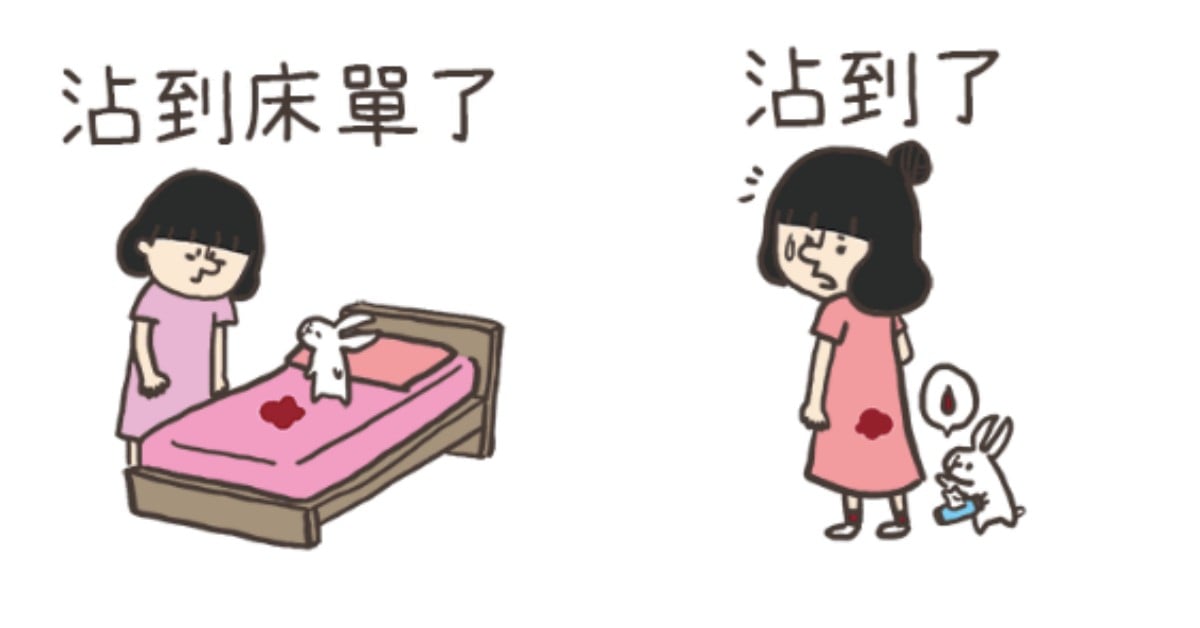另外還有姨媽「真實」登場貼圖,有時候衛生棉沒放好或是睡姿(or坐姿)不對,可惡的姨媽就會現身Say Hello⋯⋯(狀態顯示無力+生氣的洗衣服/床單去)