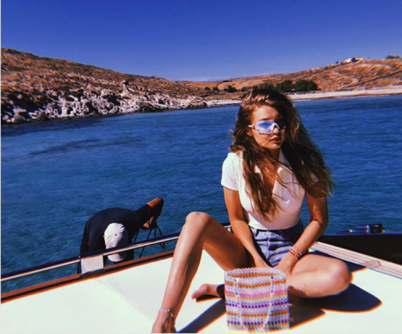 超模Gigi Hadid七月初上傳了一張在遊艇上身穿V領白T和高腰牛仔短褲的照片,除了一如往常的迷人外貌和逆天長腿外,令人值得注意的是她身前彩色又童趣的串珠包,暖色系的串珠在太陽照耀之下,呈現透亮清澈的光澤感,多看幾眼彷彿夏日不再這麼炎熱了!