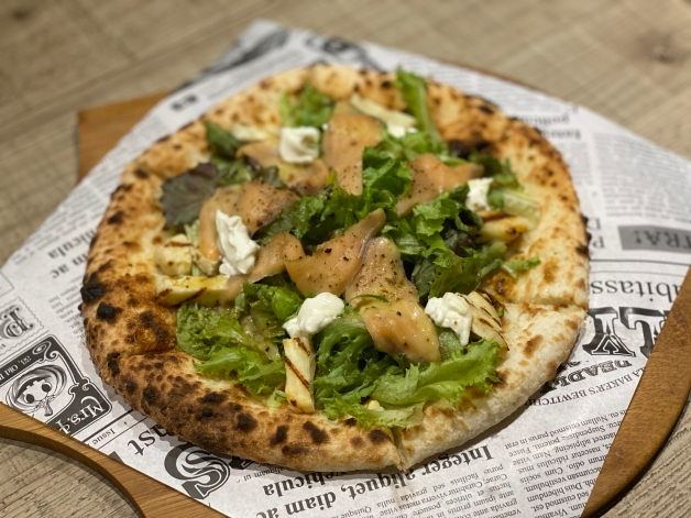 喜歡吃鮭魚的必點「烤起司燻鮭魚沙拉披薩」,最底層以「瑞可達起司」和「哈囉米乾酪起司」兩種起司為主角,吃起來的口感清甜又帶點嚼勁,生菜沙拉、煙燻鮭魚和店家自製的沙拉醬吃起來清爽又甜鹹甜鹹,妞編輯大推!
