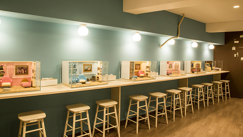 有別於過去大家對於動物咖啡廳的印象,ちくちくCAFE的刺蝟們不是被關在簡陋的籠子,而是住在一棟棟精美的模型飼養箱裡,一般人家裡養的刺蝟睡覺的地方搞不好都沒這麼高級,這個待遇很可以!(妞編輯自己家都沒這麼美)