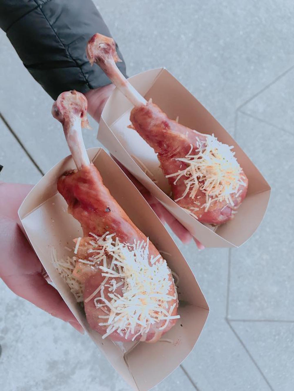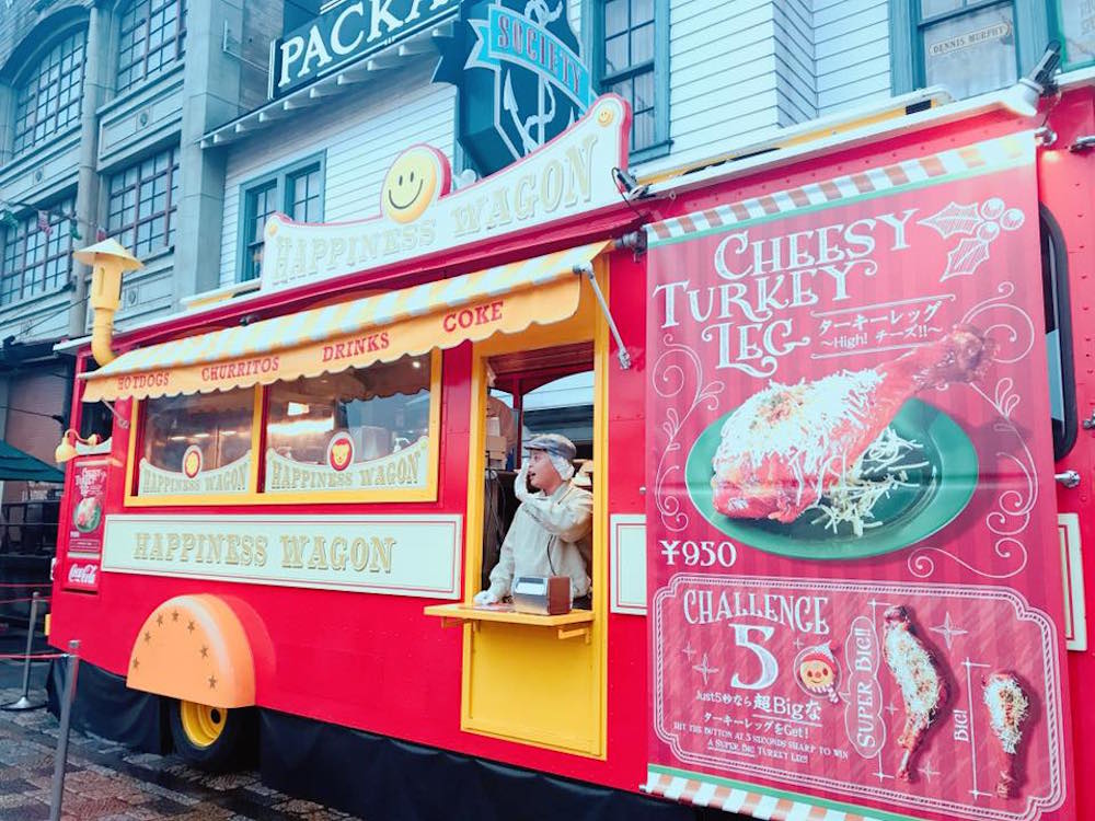 至於有什麼必吃的嘛,就非這兩種莫屬了。一個是吃了超飽足的肥嫩big火雞腿,另一個則是裡頭包著熱熱莓果巧克力的誘人甜筒,不妨和同伴一起幸福分食,補充體力再衝去看晚上的表演秀吧!
