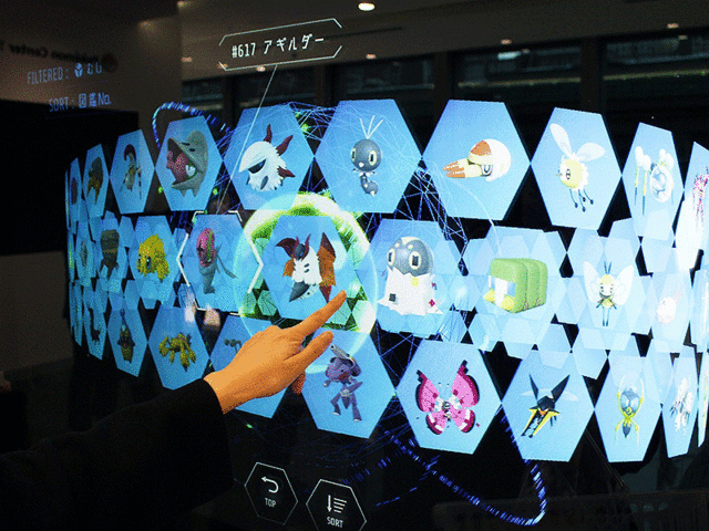 最有趣的是這個寶可夢圖鑑裝置,你可以用手指點選螢幕,操控查看每隻寶可夢的資訊。