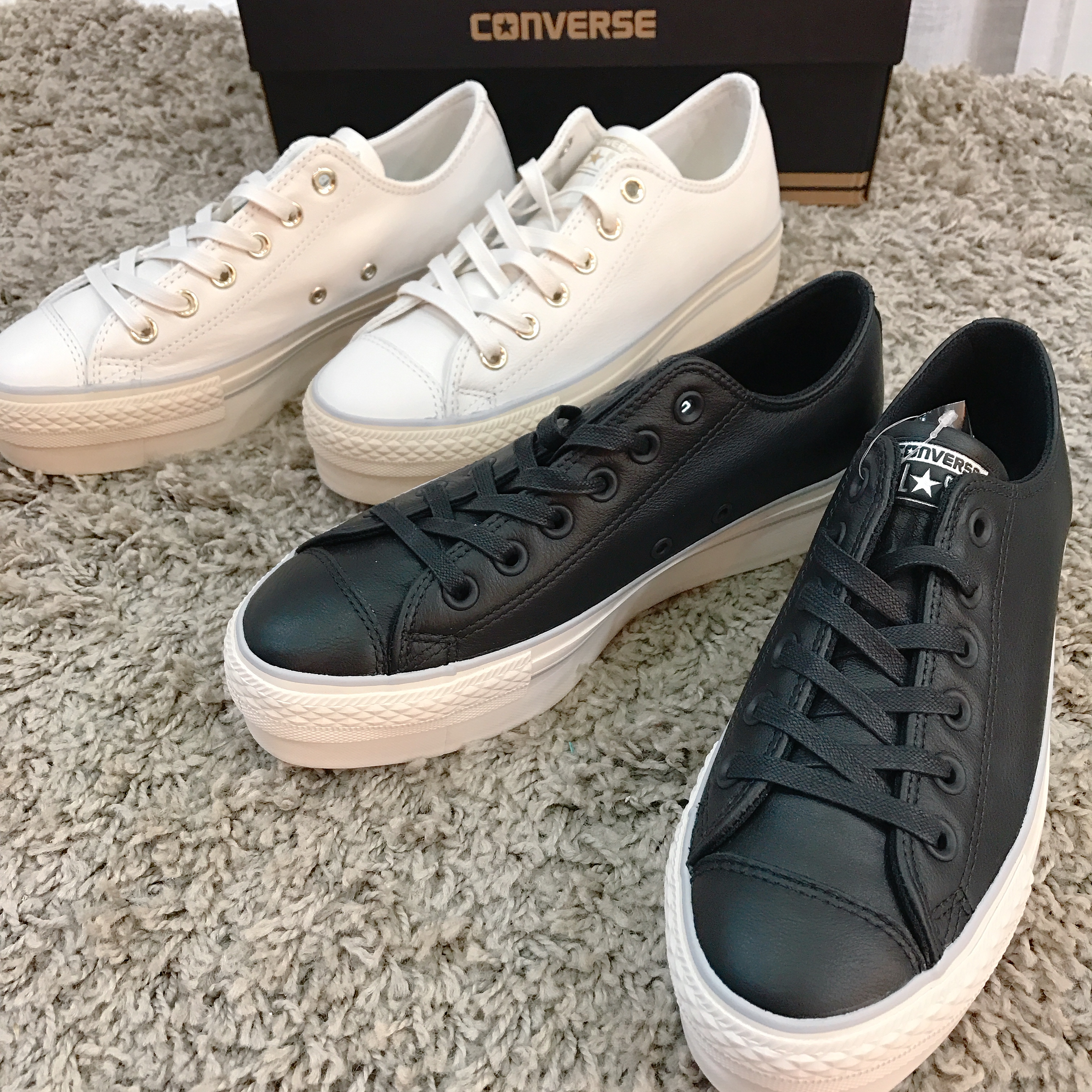 4公分高的厚底CONVERSE經典的ONE STAR鞋款有皮革與絨布兩種不同材質,喜歡簡約風的人可以選擇俐落的黑白皮革厚底鞋,而絨布這款側邊還有特別做了ALL STAR星星LOGO,只要是女生應該都會無法抗拒!(深紫色那款本尊質感超好,妞編輯們一看就淪陷呀!)
