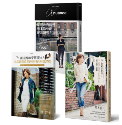 集結了《日本知名服裝雜誌造型師金子綾教妳從小細節穿出風格》、《潮流媽咪穿搭讀本!天后御用造型師的時尚穿搭課程》、《20-40歲都實用!不退流行的Simple Basic東京穿搭術》3本時尚穿搭書籍,各個年齡層都很實用!