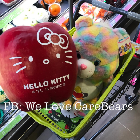以為水果跟Hello Kitty搭不上關係?看看這顆紅通通的大蘋果,上面印著凱蒂貓的臉,實在讓人忍不住把它放進購物籃裡。(怎麼覺得印了Kitty的蘋果,看起來特別甜、特別好吃?)