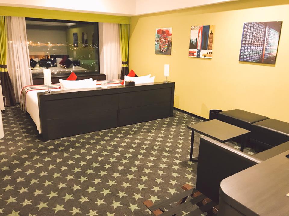 走入房間內更是不得了!(眼睛發光)超寬敞的房間設計,除了有L型大沙發、超好睡的柔軟床鋪外,最強大的就是從房內眺望出去的美景,直接將日本環遊影城的景觀盡收眼底。尤其晚上看出去還能看到那顆閃閃發亮的新聖誕樹,實在太浪漫惹。