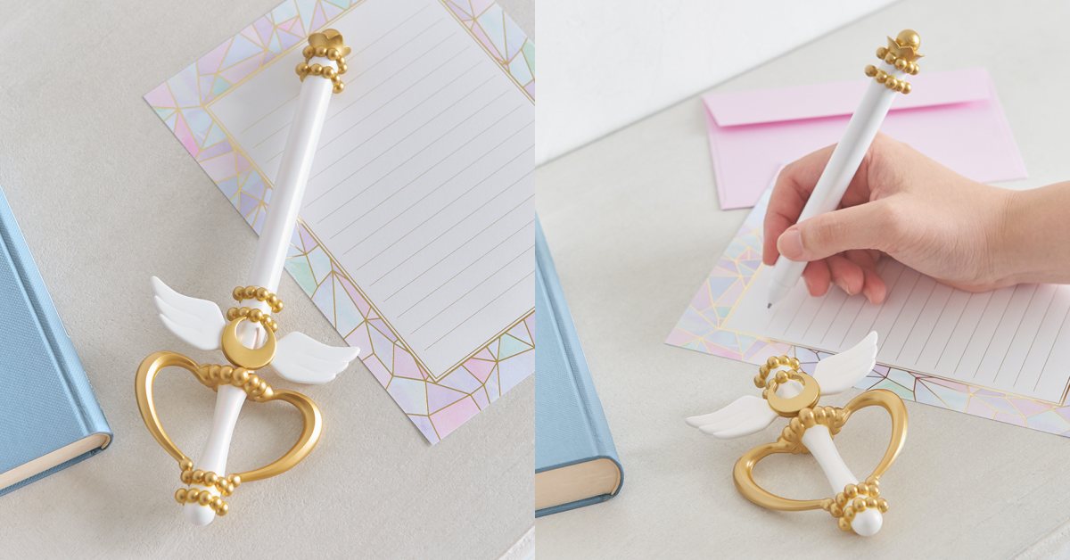 「月光萬花筒神杖」則變成原子筆登場,比起原版的粉色絢麗,這款週邊以純潔白為主色,細節特別用奢華的金色呈現。筆長約22公分,用來寫文字時就像是化身成月光仙子一樣呢!(笑)