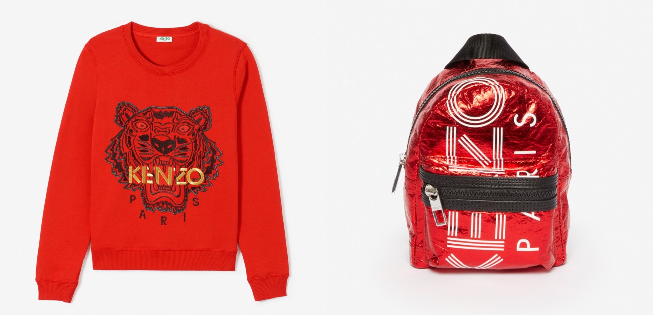 KENZO特別為了農曆新年推出獨家膠囊系列,整個紅通通的非常有東方傳統風格,品牌標誌性的「老虎頭」和「大眼睛」也有出現在全新的限定款衛衣、T恤和帽T上,以金屬大紅色搭配KENZO經典字母的背包也是非常值得注目的單品!