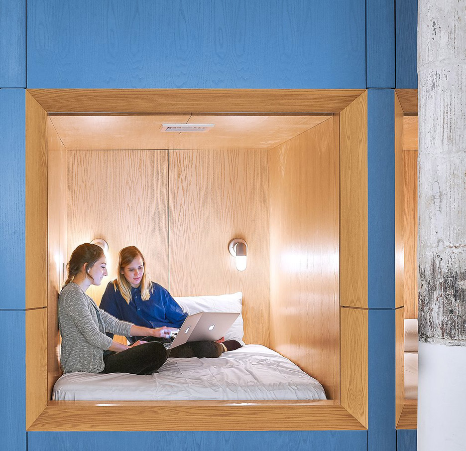 Casper鼓勵員工可以在裡面休息小憩,(順便多多體驗自己家的床墊)或者當成輕鬆的討論場所,兩人在裡面或坐或臥,愜意的氛圍,靈感似乎也特別能被激發。
