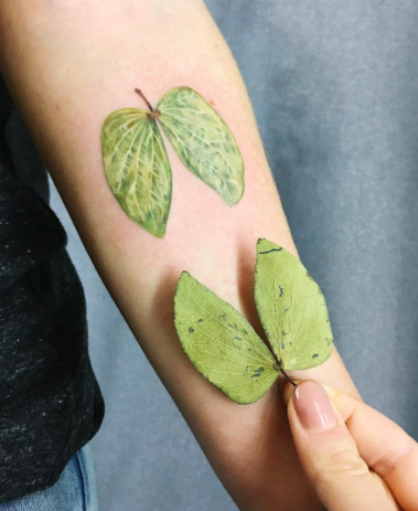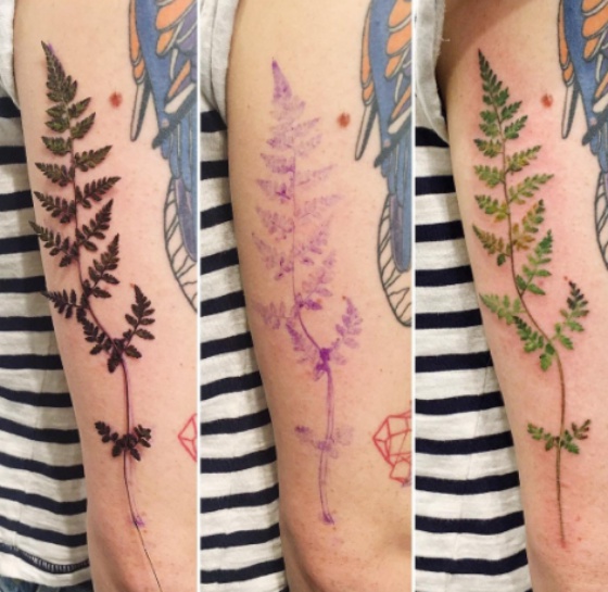 原來Rita會將植物本身先拓印在刺青範圍上,不管是葉脈還是輪廓都能精細的複製上去,這樣後續刺青時,更能掌握植物的型態與細節,擬真程度也相當驚人。