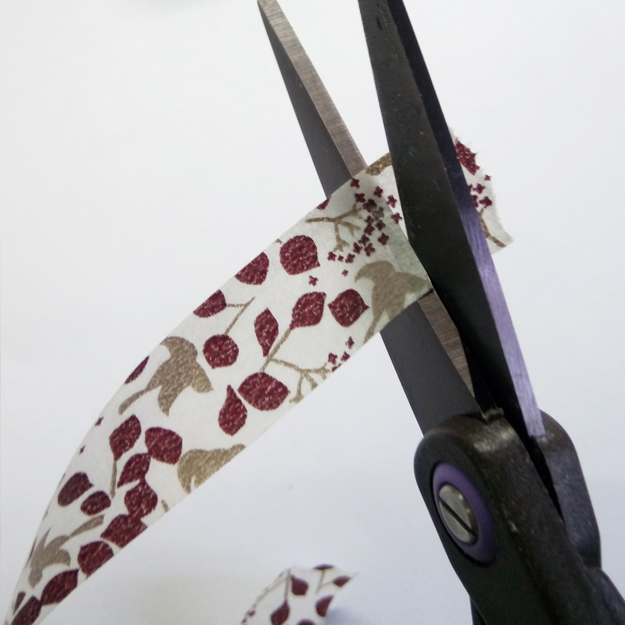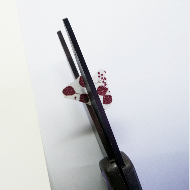 自己的習慣是使用剪刀直接剪,然後黏在手上或桌邊,這是小荷自己覺得比較快又方便的方式!也可以將紙膠帶貼在切割墊上,然後用美工刀割開。
