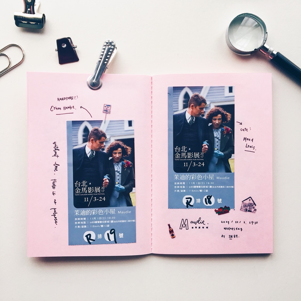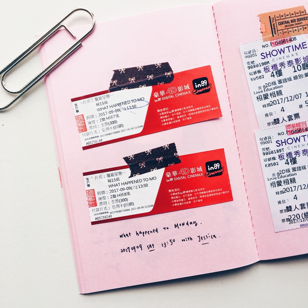 有時參加特映會的票根本身就非常的精美,直接貼在本子裡,加一點文字和就很好看了,多一點留白的畫面也沒關係!