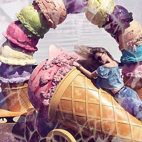 這次活動將在莫斯科市內總共設立32個冰淇淋銷售點,每個區都有不同的冰淇淋意象圖案牆,讓少女們可以各自發揮創意拍照!(但這位少女你也太融入了吧......XDD)