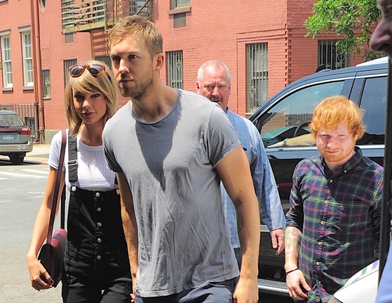 Photo source:Taylor-Swift-Calvin-Harris-Having-Lunch-Ed-Sheeran-popsugar