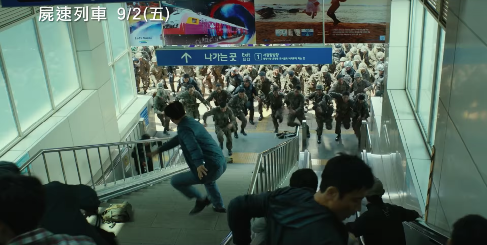 《屍速列車》從主角父女搭上列車後便一路緊張到最後一刻,毫無冷場。尤其大田站本來要求助的軍人整群被感染衝向逃難人群,甚至擠破窗戶躍至車頂的瘋狂,到最後大群活屍追著主角三人跑向車頭,場面調度優秀,畫面編排漂亮,而不斷出現的活屍血腥、可怕,卻不會給人過度噁心的感覺,讓整體感受可以順暢的延續著,幾乎直到片尾字幕出現我才真正的鬆了一口氣。