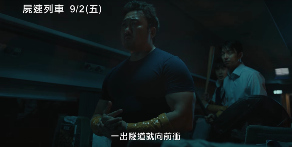 壯漢被咬的那一刻,影院裡許多觀眾和我一樣倒抽了很大一口氣。劇中他相當英勇,拳打、摔扔、盾撞,多次拯救了其他乘客。尤其是在大田站秀安即將被活屍抓到的瞬間,那個飛身肘擊完全是英雄式的表現。而他多次幽默的發言和跟老婆前小男人似的反差互動,是重要的平衡調料,稍留一點輕鬆的元素。