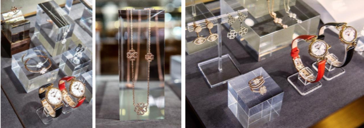 概念店採用具質感的灰色與經典橙色,由內而外塑造自然簡約的風格,讓顧客身處其中能感到舒適自在。櫃位以霧面玫瑰金打造,閃爍低調奢華的光芒。各系列的輕珠寶、腕錶、包款配件成為概念店的主角,於仔細區隔的專區內展示,訴說著獨一無二的精彩故事,觀賞者彷彿也跟著進入一趟時尚之旅。