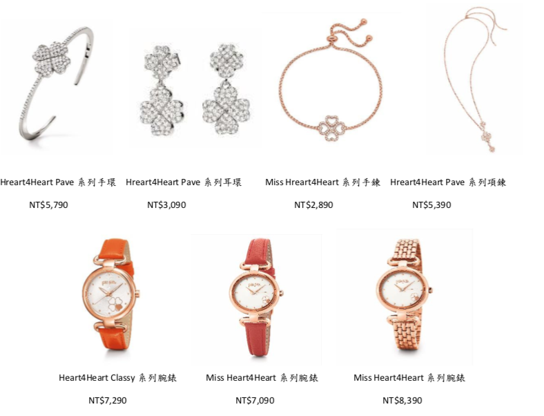 Folli Follie 最經典的Heart4Heart系列,靈感是由四枚心型葉瓣組合而成的四葉 幸運草而來,一系列的耳環、戒指、項鍊、手鍊,鑲嵌入閃爍水晶,不僅造型出眾搶眼,還蘊含著幸運的祝福象徵。在 Heart4Heart 系列四葉幸運草中的4顆 心,分別象徵著愛、希望、美麗和承諾,揭示出愛情的真諦,蘊含滿滿的真心實意,同系列並推出腕錶,在情人節中點綴出愛戀中的甜美浪漫。