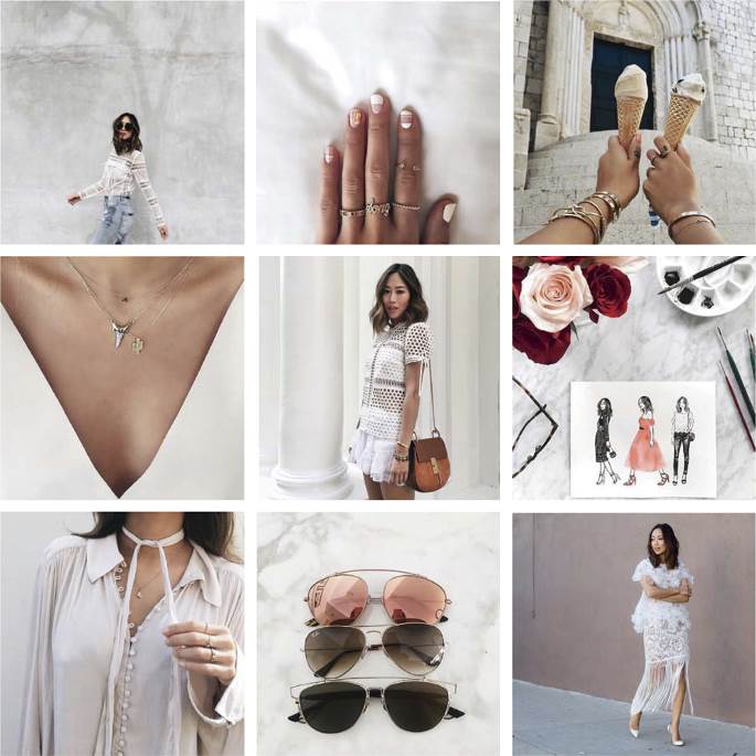 Aimee Song發布在Instagram上的照片受到廣大粉絲推崇,她擅長記錄日常生活的藝術,懂得如何透過提升圖像的造型與質感,除了常流行資訊外,成功的將自己的事業透過Instagram發揚光大,在2016年她入選《富比士》「30位30歲以下創業者」並且與許多頂級奢華品牌合作。