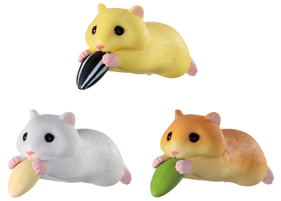 成功獲得食物的小倉鼠,也有3種顏色可選擇,而且還吃著不同的食物呢!