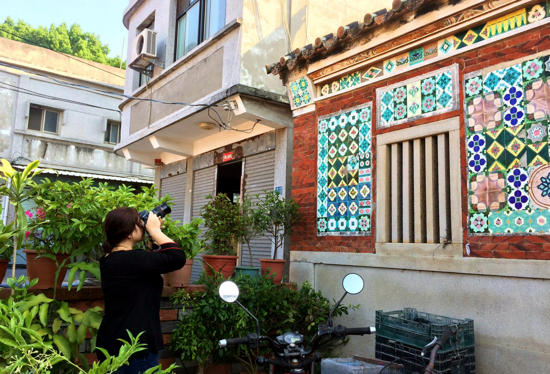 曾經她訪問了一棟保存完好的古厝。房子裡的建築裝飾和藝術品都是在戰爭即將開打前,老杯杯遵照自己父親的叮囑,搭上最後一班回金門的船離開南洋,回家辛苦守護來的。