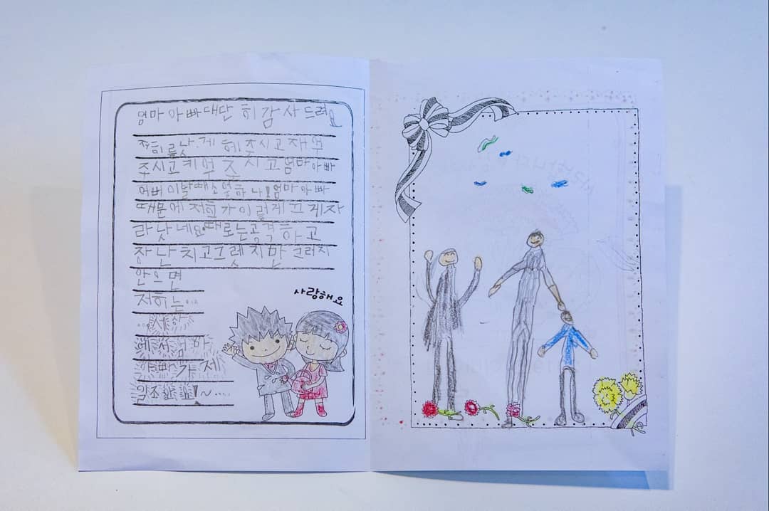 曾出演韓綜《我的超人爸爸》因而紅遍海內外的超人氣「三胞胎」,一轉眼已經暴風成長入學成為小學生了!為了慶祝今天5月8日的韓國「父母節(어버이날)」,大韓、民國、萬歲精心準備了手寫卡片送給爸爸宋一國以及媽媽鄭升妍,「1958」當然超感動立刻在SNS上曬照炫耀,更把卡片內容大公開,可愛的字句讓網友們立刻姨母笑大爆發啦~(哎一估、哎一估長大了呢!)