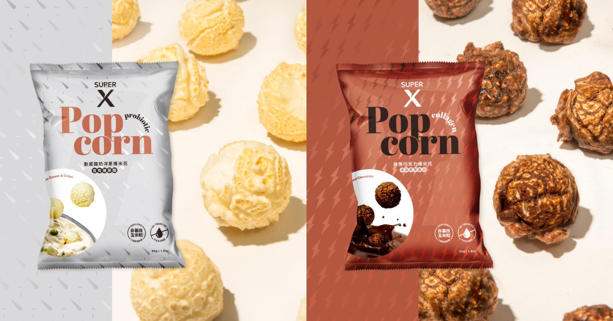 大江生活旗下全新運動營養品牌Super X希望傳達「享受運動、打造專屬於自己的健康宣言和時尚生活態度」理念,研發一系列『運動x保養x健康』的機能性食品。率先推出兩種獨特風味的保養系機能爆米花,攻佔機能食品市場。