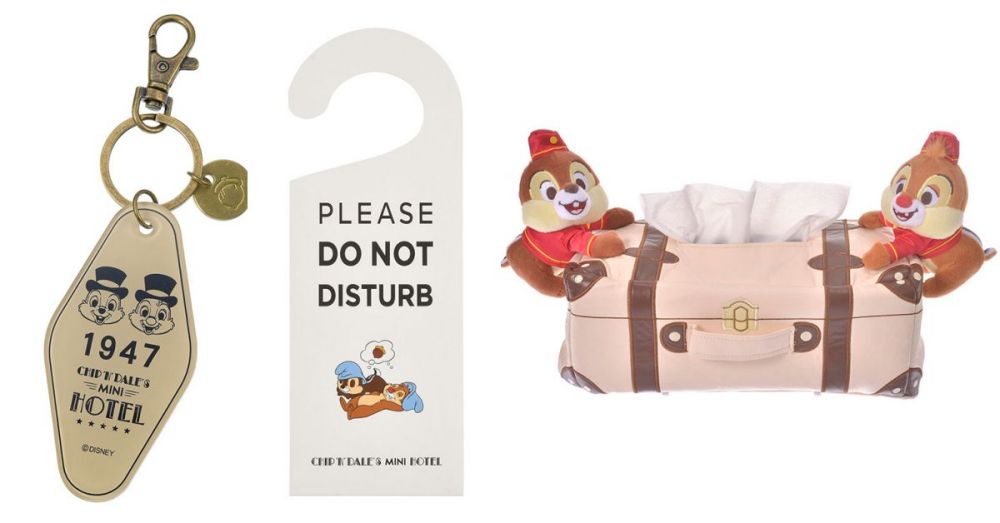 此次推出的居家用品有分裝瓶、梳子、洗臉髮帶、鑰匙圈、房間門牌與衛生紙盒,其中鑰匙圈上還寫有「Chip 'n' Dale's MINI HOTEL」(奇奇蒂蒂的迷你飯店)字樣,門牌則印上睡著的花栗鼠兄弟&請勿打擾,設計精緻又仿真,就像是真的住在飯店裡一樣。