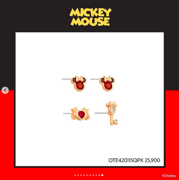 耳環部分除了招牌米奇、米妮大頭的款式,米奇手、米妮鑰匙以及愛心鑰匙造型也有巧思,甚至還推出偷偷用手比愛心的告白耳環,細節處點綴閃耀水鑽,在約會時戴上讓情人視線再也離不開你!