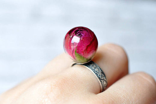 玫瑰玻璃珠戒指你有看過嗎?用簡易的銀飾做為戒托,襯托出玫瑰花的鮮活!朵朵葉瓣在玻璃器皿里綻放,讓人好想入手一枚哦!