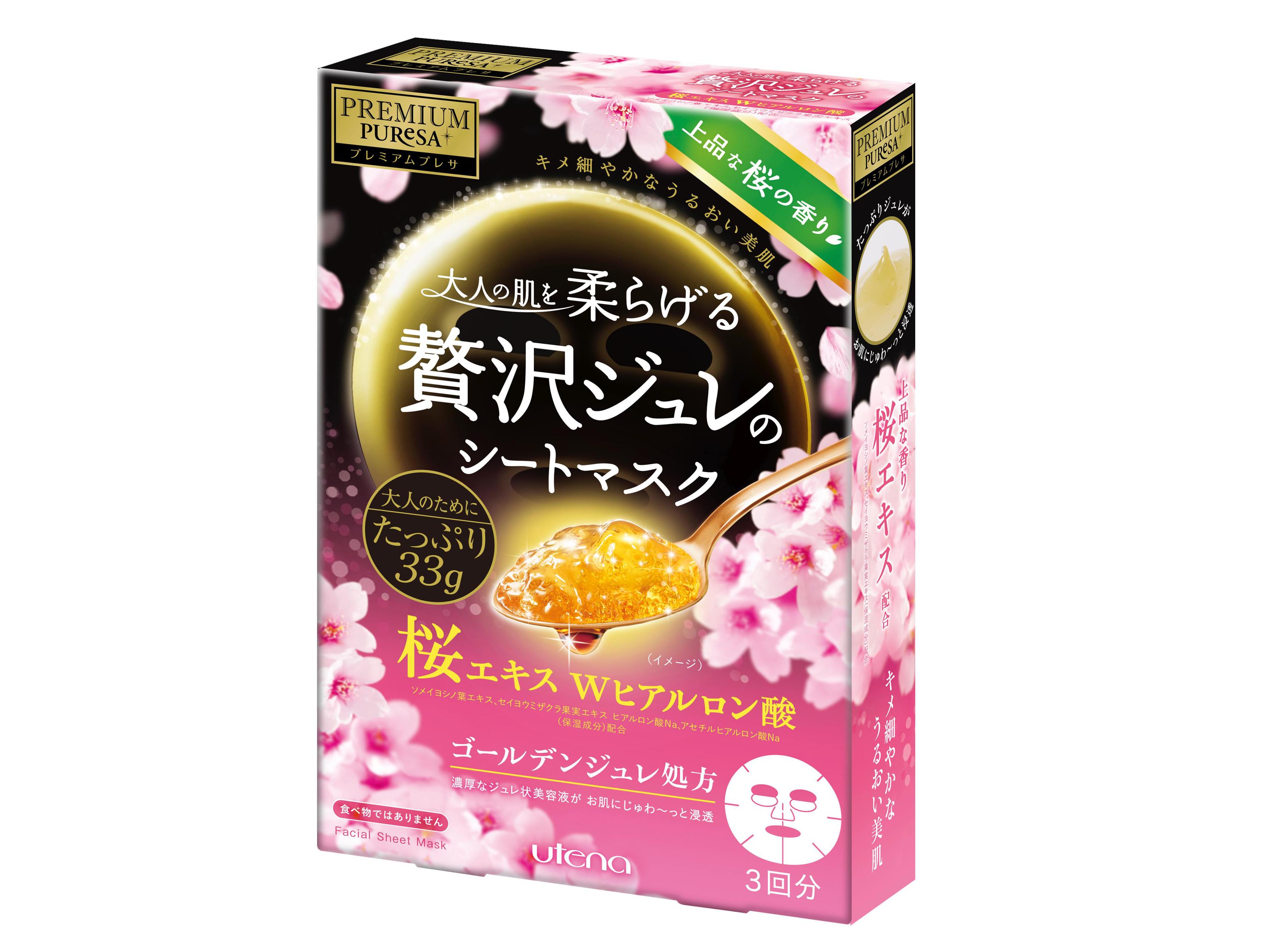 到日本必掃貨的佑天蘭黃金果凍面膜,水凝果凍狀面膜材質能緊密貼合肌膚輪廓,在今年春季推出櫻花限定版,添加天然櫻花萃取修護能量,搭配雙重玻尿酸、海藻糖精華、蜂王乳等保濕成分,深層補水保濕亮膚,獨有的沁甜香氛,好療癒喔!