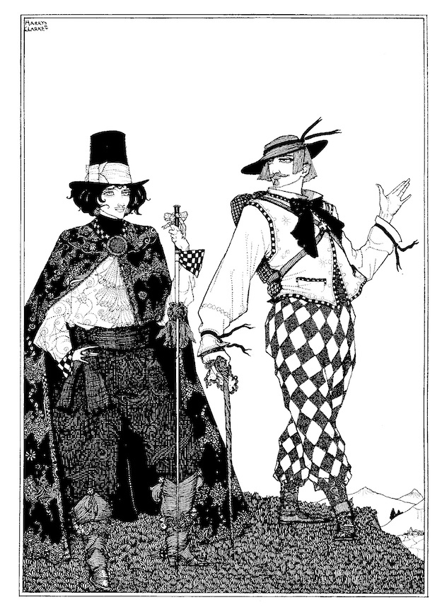 哈利.克拉克(Harry Clarke, 1889-1931)是愛爾蘭的彩繪玻璃藝術家及插畫家,也是愛爾蘭藝術與工藝運動(Arts & Crafts Movement)的主要人物。他將純熟的彩繪玻璃技巧應用於插圖作品之中,再融入濃厚的唯美主義和頹廢主義風格,創造出造型浮誇、奇幻瑰麗的畫面,堪稱獨樹一格。