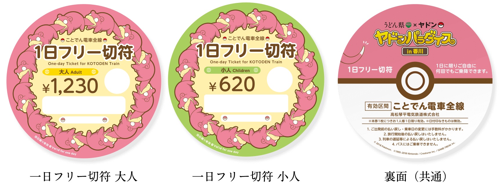 配合此次活動,高松琴平電氣鐵道也特別推出了呆呆獸主題的一日券,限定4月12 日~ 4月30日期間販售。票券一面是神奇寶貝球的圖案,另一面則是互相咬著尾巴的呆呆獸,粉粉的超級可愛!