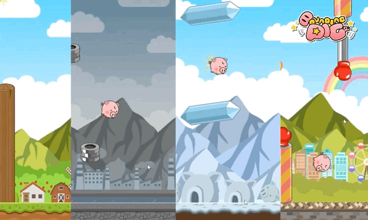 玩家只需要輕輕地點擊螢幕畫面讓「正義豬」跳起,並避開各種障礙物和大魔王「狡詐豬」順利到達終點,就成功破關囉!