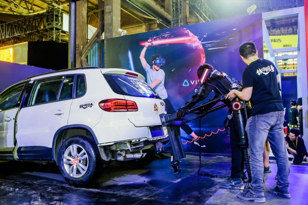 現場最受觀眾們歡迎的就是鐵甲鋼拳!創辦人製作一套外骨骼機甲,讓所有人都能變得像鋼鐵人一樣強壯!穿上它能夠輕鬆地舉起各種不同的重物。未來將會大量地應用在需要搬運的工作,像是物流,也會使用在救災上,讓消防員能夠扛起倒下的強,就出生還者等等。淘寶造物節現場直接示範一個人舉起一整台車,超驚人!