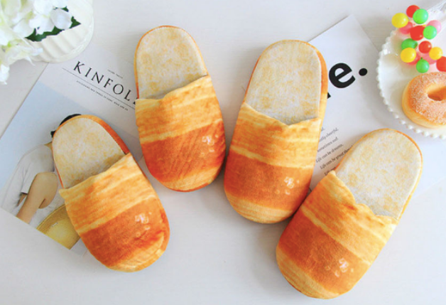「千萬不要吃!」這是麵包拖鞋,一整天如果很餓的話,就低下頭看你的腳,穿著蓬鬆的可頌脫鞋時,不要餓到咬腳腳XD總共有三種麵包款式供大家食(選)用(擇),一雙20000韓幣!