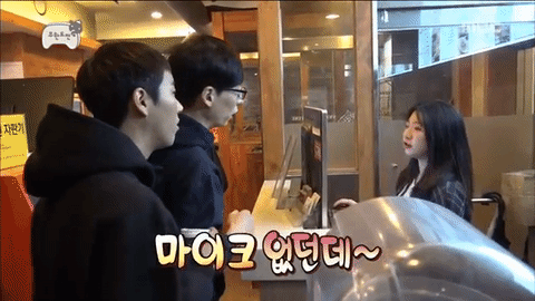雖然不是不能去櫃檯點餐,不過櫃檯貼心告知大神其實可以直接在座位上點餐~但劉在錫驚訝地說:「可是又沒有麥克風。」(對劉在錫來說,網咖完全是新世界)