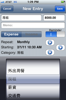 進行同步的方式很簡單,由對方AceBudget寄送的email內容包含了名稱、類別、金額與日期,若對方有Enable Post to Accounts,按下郵件中的連結,會直接進入AceBudget app中,金額名稱都會自動的匯入,使用者只要按下save鍵就可以新增了!雖然開啟app的過程有點緩慢,但是不得不說這項功能的確是非常的實用又不麻煩。