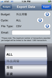 每個周期結束後,支出內容會歸零,可以從History看到先前的紀錄;而Share則是讓你共享記載內容給別人,像是夫妻共同使用單一帳戶的,或是情侶間有約會基金等等,都可以用此功能進行同步;箭頭的圖示則是可以調動預算金額與輸出資料,以下會詳細介紹。
