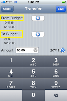Transfer則是可以讓你調度預算金額,比方說,這個月「娛樂」的花費快要超支了,那麼可以去跟”手頭比較寬鬆”的「日用品」周轉,而這個動作並不會影響下一次周期的預算規劃,不僅不會讓總預算爆表,還可以降低亂花錢的罪惡感,真的是太貼心的一項功能了。