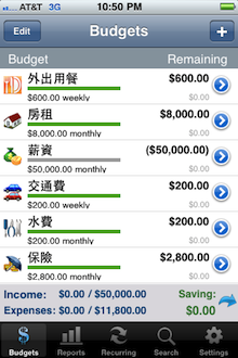 Icon圖示的選擇多達60多種,雖然設計精美,但是顯示的尺寸稍小,放在Budget裡面並沒有達到icon應具備的簡單明瞭效用,有時候反而令人感到眼花撩亂,不知該如何選擇。