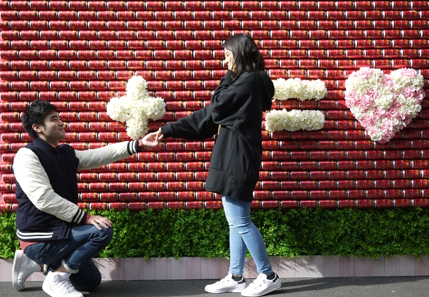來自日本的低酒精飲料「HOROYOI微醉」,以3%低酒精濃度、淡淡香甜搭配清爽的微碳酸,溫和易飲,廣受消費者喜愛。為了慶祝有著微酸帶甜口味、以及可愛瓶身的「HOROYOI微醉草莓沙瓦」於2018年1月3日起在全台7-ELEVEn限定上市,三得利特別引進日本原宿超火紅愛心牆打卡景點概念,在於華山文創園區千層野台旁牆面,運用600百多瓶「HOROYOI微醉草莓沙瓦」瓶身堆疊成磚牆,並搭配粉嫩的花朵排成「+」、「=」符號,再加上大大的「♥」愛心圖騰,打造充滿浪漫氛圍的「HOROYOI微醉草莓沙瓦告白牆」。只要2個人一組站在「+」兩邊,就能打造一組傳達愛意的浪漫公式,是情侶們示愛放閃、閨蜜們展現友誼的絕佳好去處。