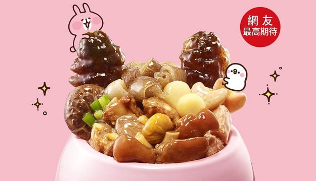 今年老協珍秒殺系列佛跳牆再加場,同時推出立體萌系設計「卡娜赫拉佛跳牆」,獨家秘製的經典佛跳牆,嚴選上等黑玉烏參、排骨煲燉台式高湯,與P助、粉紅兔兔一起萌翻登場!