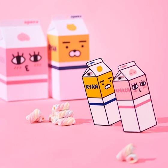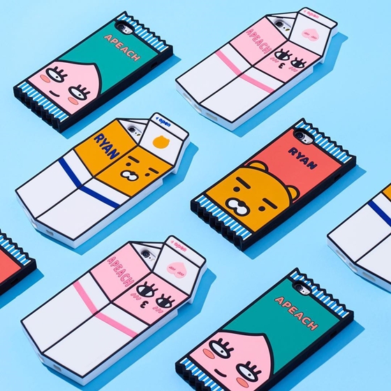 首先是這款Ryan和Apeach化身牛奶盒的手機殼,採用的是彈性的矽膠材質,所以即便是明亮的淡色系,也不太需要擔心會髒,還能保護手機掉到地上摔傷。