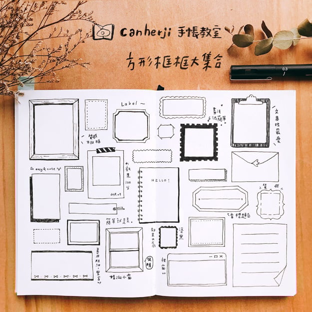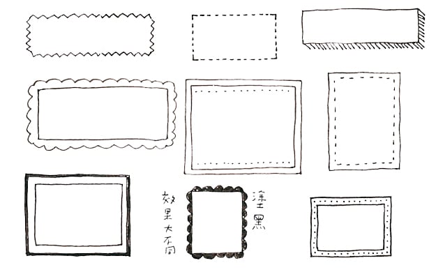 手繪方框用途很廣,可以放在手帳標題、內文、或是畫在信封上,而且僅靠一枝黑筆就能完成,整體簡單又有質感哦!